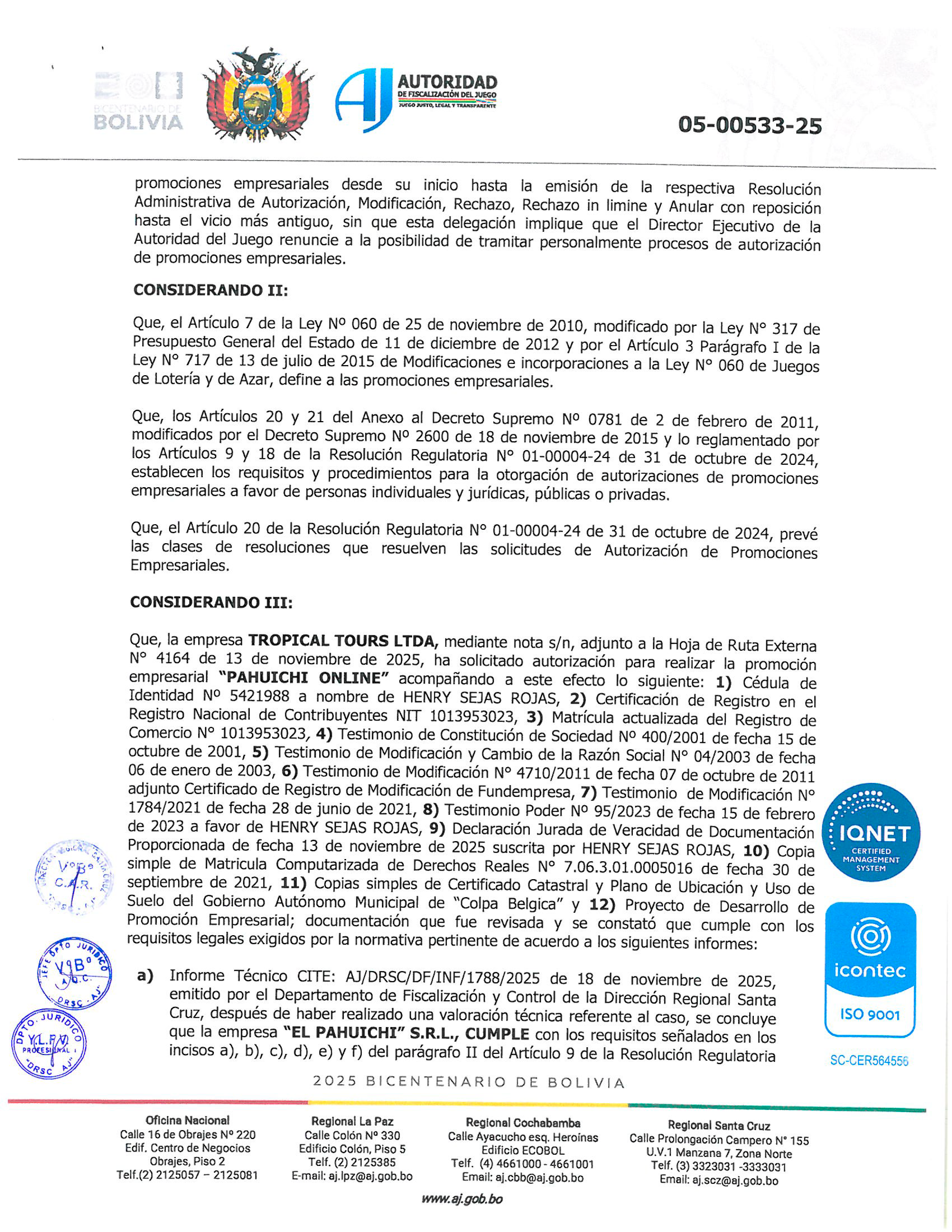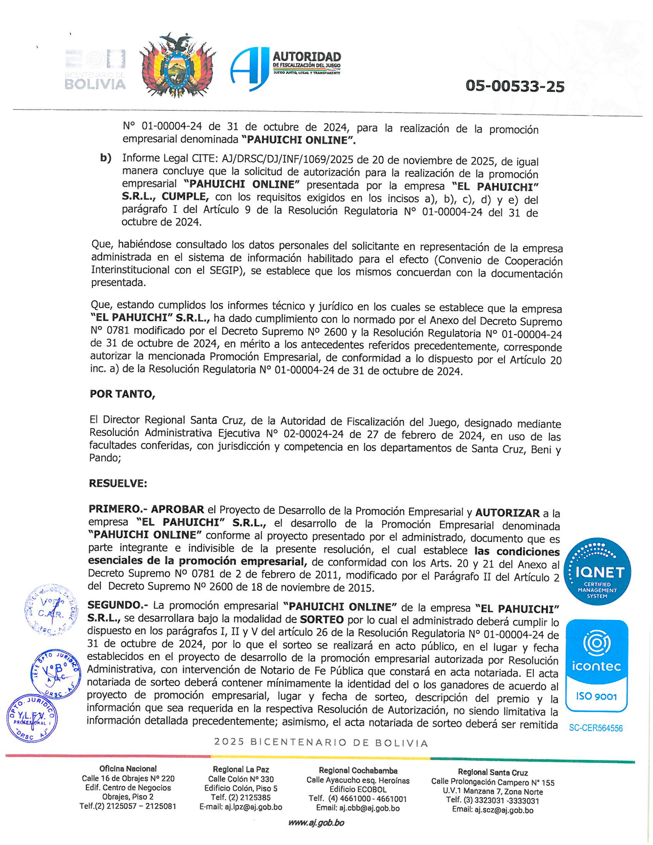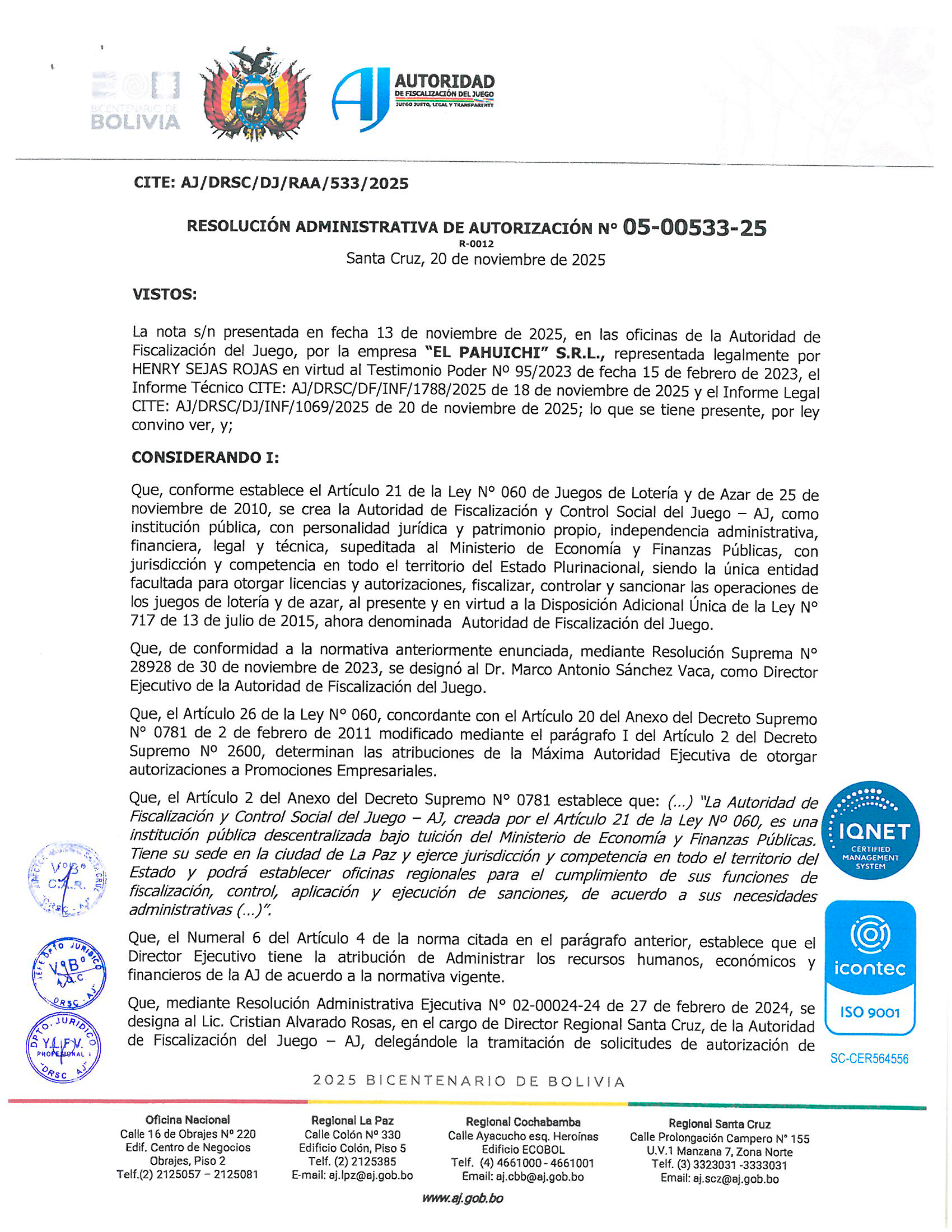 RESOLUCIÓN ADMINISTRATIVA DE AUTORIZACIÓN